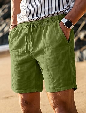 Homme Shorts en Lin Shorts d'été Shorts de plage Cordon de serrage Avec Poches Uni Confort Respirant Longueur Genou Quotidien Extérieur Fête Vacances Occasionnel Noir Blanche Non Elastique