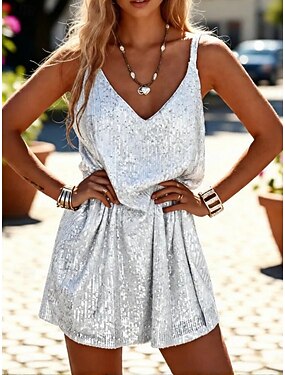 Femmes Mini Robe Robe Blanche Robes à paillettes Robe Décontractée Mode Moderne Extérieur Vacances Soirée Coupe régulière Uni Sans manches Col en V Noir Blanche Jaune Été Printemps