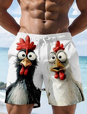 Homme Dessin animé Coq Drôle Maillots de bain Shorts de bain Shorts de Surf Taille Moyenne Hawaïen Vacances à la Plage Poches Latérales doublure en maille Taille élastique avec cordon de serrage