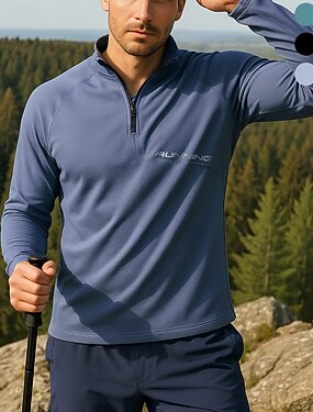 Homme Sweat-shirt polo Haut de course Haut de randonnée manche longue Col montant T-shirt Top Extérieur Séchage Rapide Léger Élastique Respirant Printemps Automne Quart de zip Polyester Gris fonc