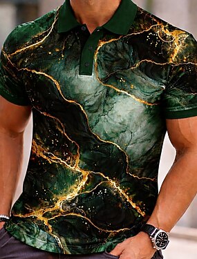 Homme Marbre Polo Manche Courte Polos Chemises à Col Occasionnel Rue Athleisure Tenue quotidienne Impression 3D Boutons Maille Respirante Printemps & Été Bleu Vert
