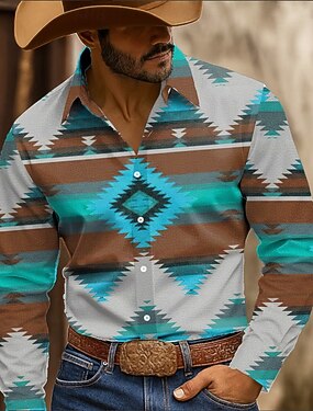 Homme Imprimé Floral Chemise Chemise Boutonnée Chemise de cow-boy manche longue Style Western Occasionnel Extérieur Vêtements de travail Printemps Automne Col Rabattu Impression 3D chemises à col