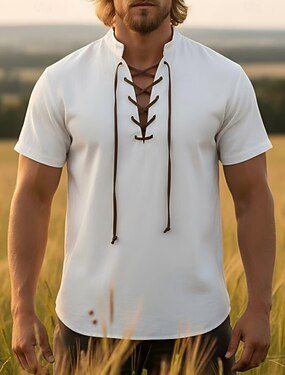 Médiéval Renaissance Chemise Manches courtes Pirate Viking Déguisement Homme Viking Pirate Halloween Carnaval Performance LARP Foire de la Renaissance Adulte Chemise Été