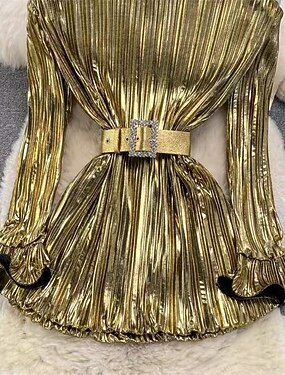 Femmes Robe Midi Robes à paillettes Élégant Mode Moderne Quotidien Extérieur Plage Coupe régulière Uni manche longue Col ras du cou Dorée Printemps Automne