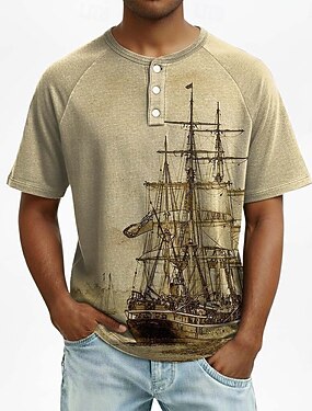Homme Graphique Vintage Chemise Henley T-shirt Manche Courte Mode Designer Occasionnel Quotidien Extérieur Printemps & Été Toutes saisons Bleu Vert Violet Kaki Henley T-shirt Henley