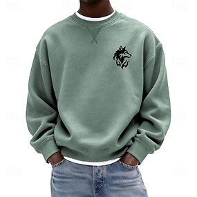 Homme Graphique Loup Sweatshirt manche longue Pulls molletonnés Col ras du cou Classique Athleisure Quotidien Maison Automne Hiver Bleu Noir Vert Vêtement Tenue Designer Imprimé Graphique S M L XL