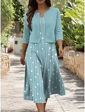 Femmes Robe Ensemble Robe trapèze Élégant Occasionnel Graphique Géométrie Superposé Imprimé Robe Midi Demi Manches Col en V Quotidien Bleu Rose Claire Violet Été Printemps Coupe régulière