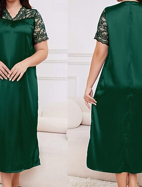 Femmes Loungewear Chemise de Nuit Mode Occasionnel Couleur Unie Pyjama en satin soyeux Dentelle Patchwork Robes Maison Vacances manche longue Col en V Noir Blanche Vert Claire Rose Claire Violet