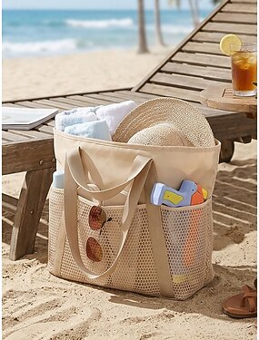 Lot de 2 grands sacs de plage en filet, sacs de plage grande capacité en polyester avec poignées robustes, sacs de voyage légers pour la plage, les vacances, la piscine et le camping.