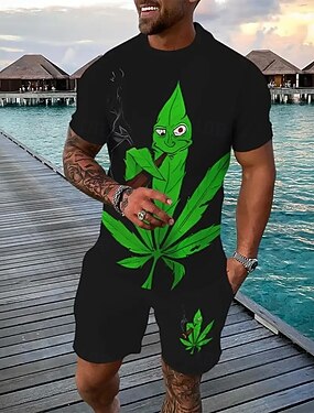 Homme Motif de Plantes 2 pièces Ensembles de tees Hauts d'été Manche Courte Pantalon court Col ras du cou Sport Occasionnel Tendance Vacances Sport Quotidien Impression 3D Été Vert Noir
