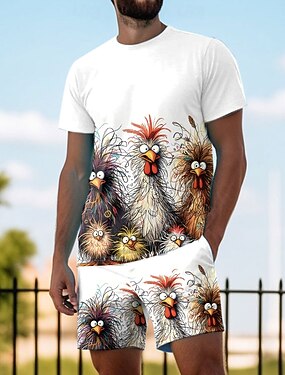 Homme Coq 2 pièces Ensembles de tees Ensembles assortis Manche Courte Pantalon Court Col ras du cou Sport Designer Occasionnel Extérieur Vacances Quotidien Cordon de serrage Col rond Imprimé Blanche