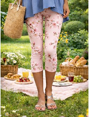 Femmes Chinos Leggings Vacances Mode Streetwear Capris Taille haute Fleuri Graphique Confort Doux Confortable Haute Élasticité Quotidien Extérieur Vacances Rose Vert Été Printemps Coupe Slim