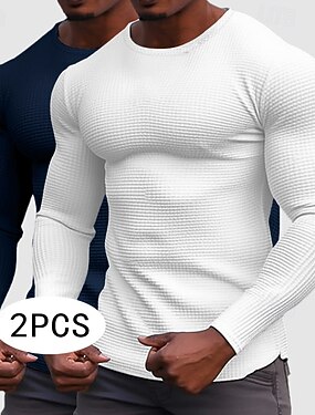 Homme Chemise gaufrée T-shirt Chemise à Manches Longues manche longue Col ras du cou Printemps & Automne Toutes saisons Uni Mode Designer Basique 2 pièces Pack multiple Tricoté Vacances Rue