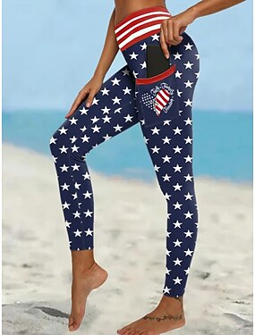 Femmes Chinos Leggings Vacances Mode Streetwear Capris Taille hautePantsJour de l'Indépendance américaine Graphique Drapeau Américain Confort Doux Confortable Élastique Quotidien Extérieur Vacances