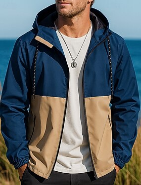 Homme Veste à capuche Veste softshell Veste de randonnée Printemps Automne Extérieur Bloc de Couleur Coupe-vent Résistant à l'Eau Coupe-vent Voyage Noir Bleu Beige Grise