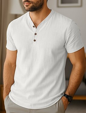 Homme Chemise Henley T-shirt T-shirt en lin Manche Courte Manches courtes Col en V Henley Été Toutes saisons Uni Mode Designer Basique Pur Vacances Rue Occasionnel Noir Blanche Bleu Ciel T-shirt haut