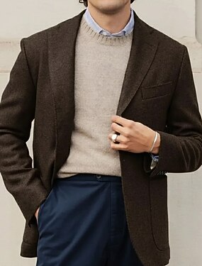 Homme Blazer en Tweed Col cranté Mode Classique Occasionnel Couleur Unie Blazer en tweed Noir Gris foncé Café Coupe sur mesure à boutonnage simple à un bouton