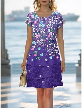 Femmes Mini Robe Robe fourreau Robe d'été Vacances Boho Quotidien Date Sortir Coupe régulière Fleuri Graphique Manche Courte Col ras du cou Bleu Violet Vert Été Printemps