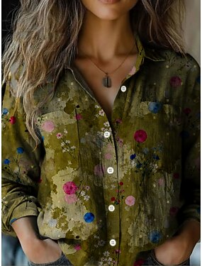 Femmes Chemise Chemise Bohème Boutons Imprimé Fleuri ancien Élégant Ethnique manche longue Col de chemise Hauts Réguliers Quotidien Fête Sortir Vert Printemps Automne