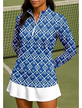 Femmes Floral tenue de sport Robe polo de tennis Manche Courte Quart de zip Élastique Évacuation de la transpiration Respirant Volley-ball Tennis Le golf Col Rabattu Col zippé Robe Bleu Vêtements de