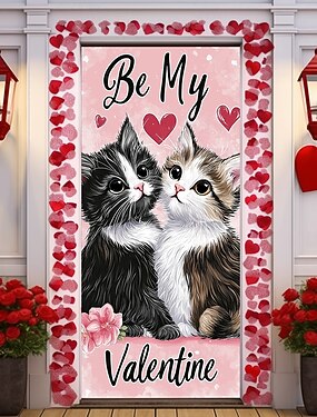 décorations extérieures de la Saint-Valentin, couvre-portes, tapisserie de porte, rideau de porte, décoration, toile de fond, bannière de porte intérieure/extérieure pour porte d'entrée, couronne de