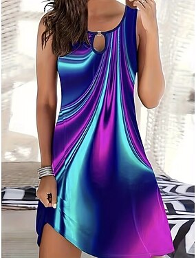 Femmes Mini Robe Robe trapèze Robe d'été Robe à épaules dénudées Vacances Occasionnel Quotidien Coupe régulière A Ombre Graphique Sans manches Col ras du cou Violet Été Printemps