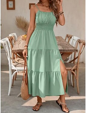 Femmes Robe Midi Robe d'Été Robe de Plage Robe Nuisette Élégant Mode Moderne Extérieur Vacances Sortir Coupe régulière Uni Sans manches Col ras du cou Bleu Noir Rose Claire Vert Véronèse Été Printemps