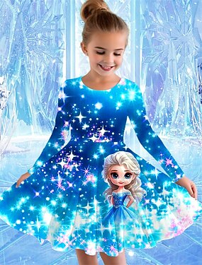 FILLE 3D Dessin animé Robe manche longue Été Printemps Vacances Quotidien Fête Princesse Beau Doux Enfants 4-12 ans Robe Décontractée Robe trapèze Mi-long Coupe régulière