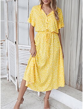 Femmes Robe Midi Robe Décontractée Robe Portefeuille Robe Fleurie Élégant Mode Moderne Extérieur Vacances Sortir Coupe régulière Fleuri Manche Courte Col en V Noir Jaune Chameau Violet Été Printemps