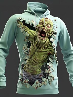 Homme Illusion d'optique Zombies 3D Sweat à capuche Sweatshirt Punk Exagéré Gothique Occasionnel manche longue Col ras du cou À capuche Vêtements de rue Club Bleu Bleu Clair Vert Kaki Cordon de