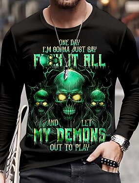 Homme Crâne Squelette T-shirt manche longue T-shirt Impression 3D Col ras du cou Chemise Mode Exagéré Rue Occasionnel Quotidien Noir Été Printemps Automne Vêtement Tenue S M L XL XXL XXXL