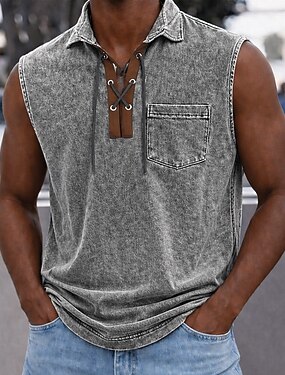 Homme Polo Chemise 100% coton délavée à l'acide Occasionnel Fête Revers Sans manches Mode Basique Uni Vintage Affligé Été Printemps Bleu Rose Claire Violet Vert Gris Polo