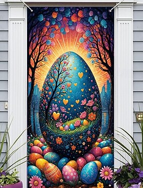 Décor de porte Couvre-porte Tapisserie de porte Oeufs Décoration de rideau de porte Décor de fond Banner de porte Intérieur/Extérieur pour porte d'entrée de ferme
