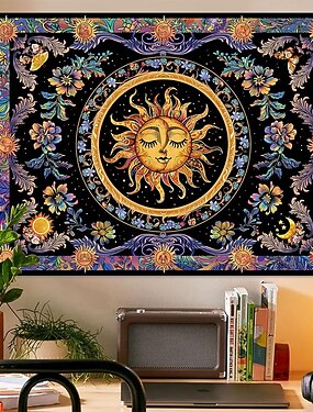 tapisserie Bannières Tentures Murales Soleil Rétro Vintage Boho Chambre Salon Dortoir Décorations murales, porte, arrière-plan
