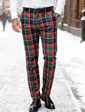 Homme Pantalon Chino Pantalon chino Pantalon habillé à carreaux Poche Plaid Confort Respirable Extérieur du quotidien Sortie Mode Vêtement de rue Blanche Rouge