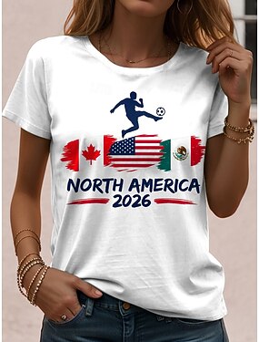 T-shirt pour femmes Match de football mondial 2026 Impression graphique stylée classique décontractée à manches courtes col ras du cou hauts réguliers sports quotidiens bleu noir blanc été printemps