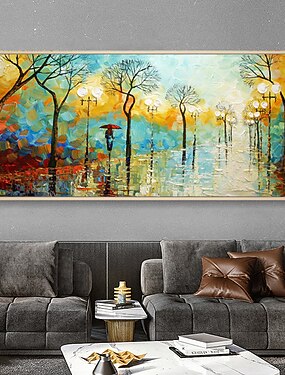 main peinture à l'huile toile mur art décoration abstrait paysage peinture coloré couple bois trottoir pour la décoration intérieure roulé sans cadre non étiré peinture