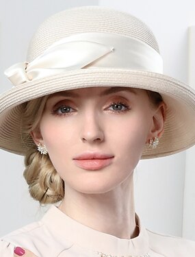 Chapeaux Tulle Paille Chapeau melon / cloche Chapeau soucoupe Haut-de-forme Fête du thé Course de Chevaux Romantique Britannique Avec Nœud Casque Couvre-chef