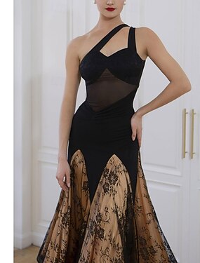 Danse de Salon Robe Dentelle Plis Épissage Femmes Soirée Entraînement Performance Sans manches Haut Spandex Polyester