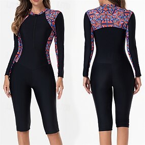 Femmes Maillot Anti UV Maillot de bain 1 pièce imprimé fermeture éclair sur le devant Spandex Protection Solaire UV UPF50+ Séchage Rapide manche longue Le Maillot de corps maillot de bain Surf Plage