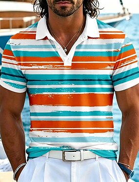 Homme Rayures horizontales Polos Hawaïens Manche Courte Polos Revers Occasionnel Resort Athleisure Tenue quotidienne Vêtements de vacances Impression 3D Boutons Été Printemps Bleu Orange Abricot