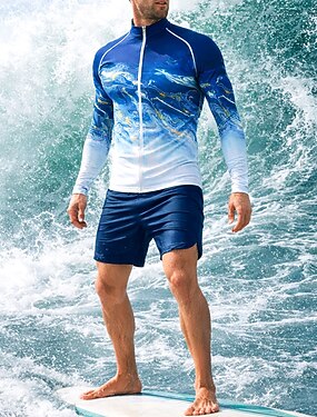 Homme Standard Maillot Anti UV Short de bain anti-UV Tee-shirt de Baignade Dégradé Abstrait Marbre Zip Up UPF50+ Protection UV Séchage Rapide manche longue Maillot de Bain Tee-shirts anti-UV, tops