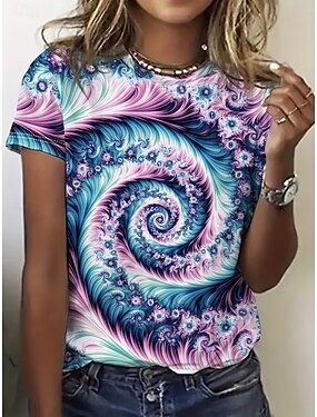 Femmes T-shirt Imprimé Graphique Teinture par nouage Élégant Classique Occasionnel Manche Courte Col ras du cou Col rond Hauts Longs Quotidien Rose Claire Rouge Violet Vert Été Printemps