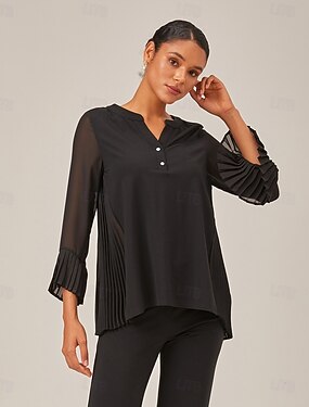 Femmes Féminin Couleur Unie Formel Mariage Soirée Manche illusion Manche Évasée Noir Froncé Plissé Ourlet irrégulier manche longue Élégant Quotidien Col en V Printemps & Automne Automne
