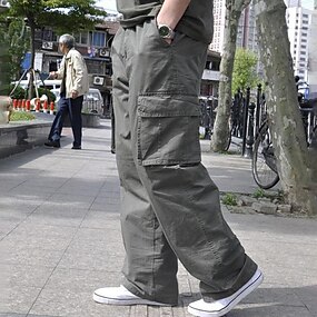 Homme Pantalons Cargo Pantalon cargo Pantalons Amples Poche à Rabat Uni Respirant Extérieur Quotidien Grand et Long Noir Vert