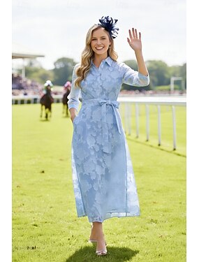 Ligne A Longueur au sol Robe d'invité de mariage Robe de Mère de Mariée Manche Courte Col de chemise Élégant Formel Kentucky Derby Semi-Formel Dentelle avec Broderie Appliques