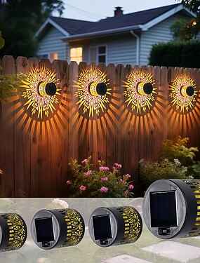 Lot de 4 lampes murales de projection solaires étanches en métal creux pour extérieur, idéales pour le jardin, la terrasse, la cour, la pelouse, la clôture, les marches, l'allée, le porche, la villa,