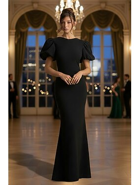 Fourreau Colonne Longueur cheville Robes de Cocktail Robes de soirée Fête Éclat Éclat & Brillance Demi Manches Épaules Dénudées Bal de promo Tenue de Soirée Invité de mariage d'automne Jersey avec