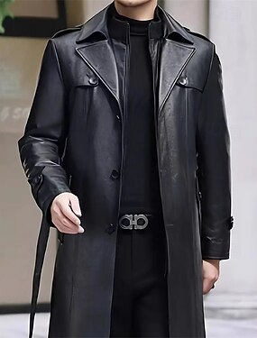 Homme Manteau Trench Trench-Coat Long Vacances Quotidien Automne Hiver Similicuir Coupe-vent Vêtements d'extérieur Vêtement Tenue Mode Classique Uni Avec Poches Revers Simple Boutonnage