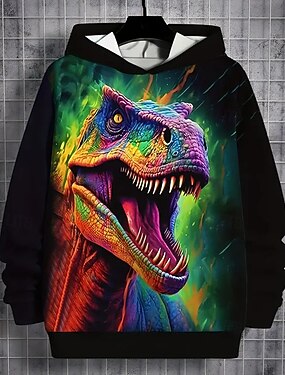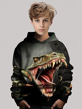 Garçons 3D Animal Dinosaure Sweat à Capuche manche longue Printemps Automne Mode Streetwear Enfants 4-12 ans À capuche Extérieur Occasionnel Quotidien Coupe régulière